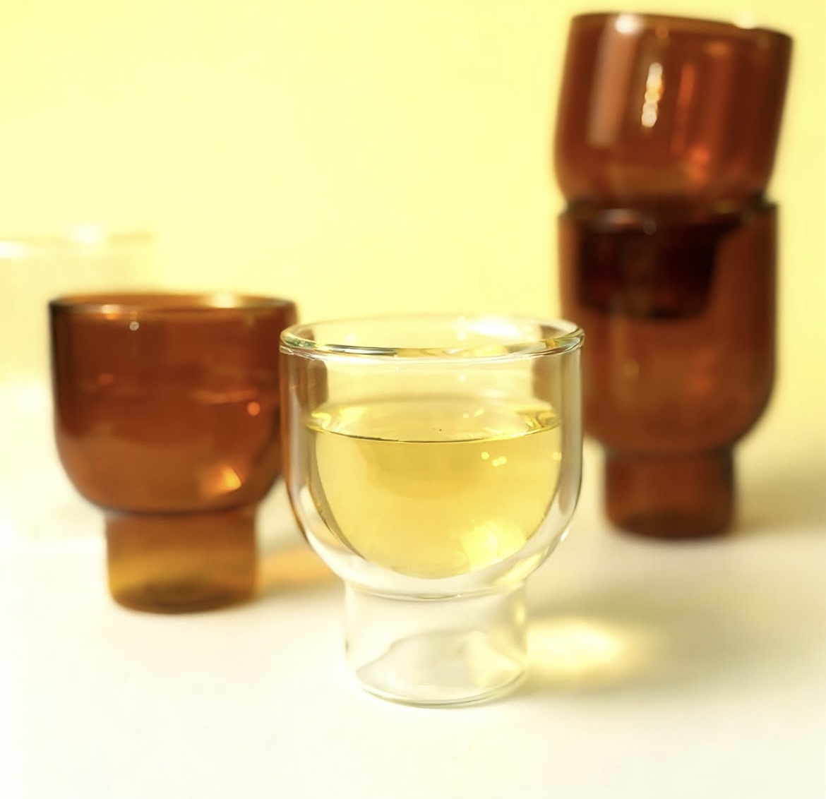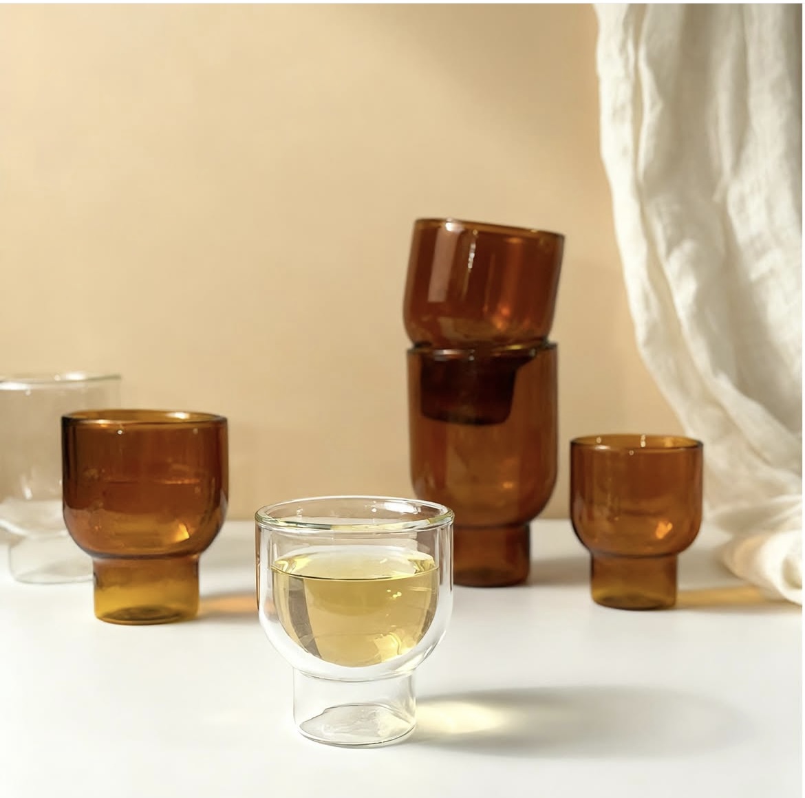 For both hot and cold drinks. Two sizes of drinking glass and a bowl.